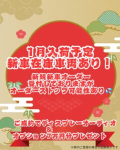 今回の初売りフェアでは、すべてのご成約が対象となる特典として、新品ディスプレイオーディオをプレゼント。ナビ機能やBluetooth接続、バックカメラ連動など、日常使いから長距離ドライブまで快適にサポートする人気装備です。NV200バネットや軽バンなど、仕事用・プライベート用を問わず使い勝手が向上します。